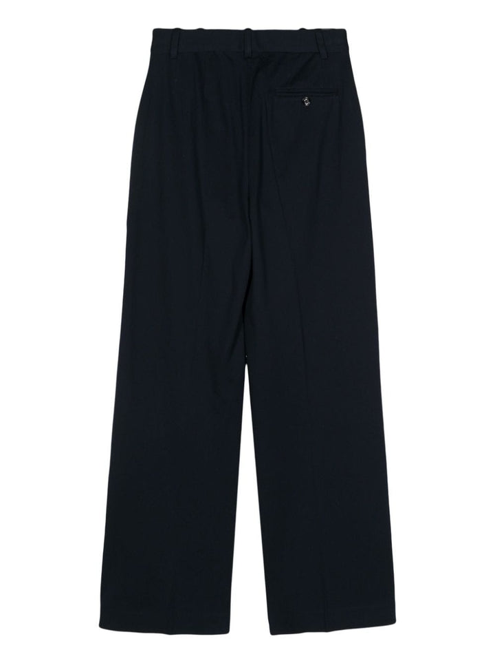 navy blue stretch-cotton piqué weave belt loops at the waist two side slash pockets pressed crease rear welt pocket straight leg concealed front button, hook and zip fastening m/p, 2 bottoni, 2 tasche, slim fit Pique trousers Size and Fit - This piece fits true to size. We recommend you get your regular size. Model is 1,75m / 5ft 8in wearing size 40 (IT)