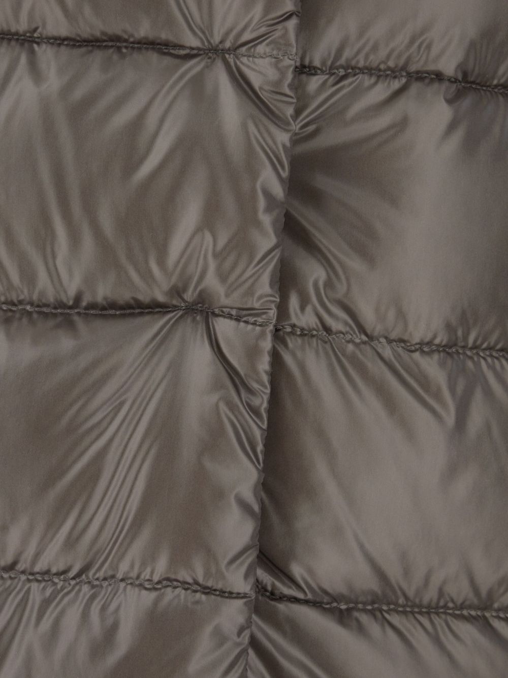 grey cotton blend and goose down dark grey concealed front fastening two side slit pockets high neck long sleeves Dora long down jacket