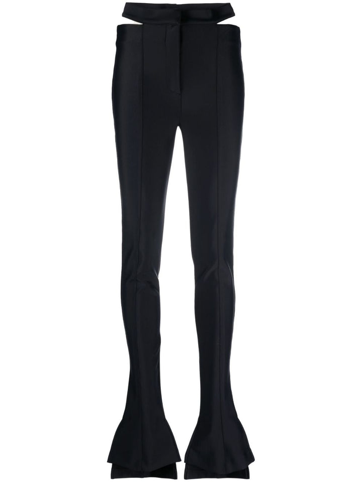cut-out detail trousers from MUGLER featuring black, stretch-design, cut-out detailing, pressed crease, split cuffs and concealed front fastening. elasticizzato, svasati Flared stretch trousers Size and Fit - This piece fits true to size. We recommend you get your regular size. Model is 1,75m / 5ft 8in wearing size 36 (FR)