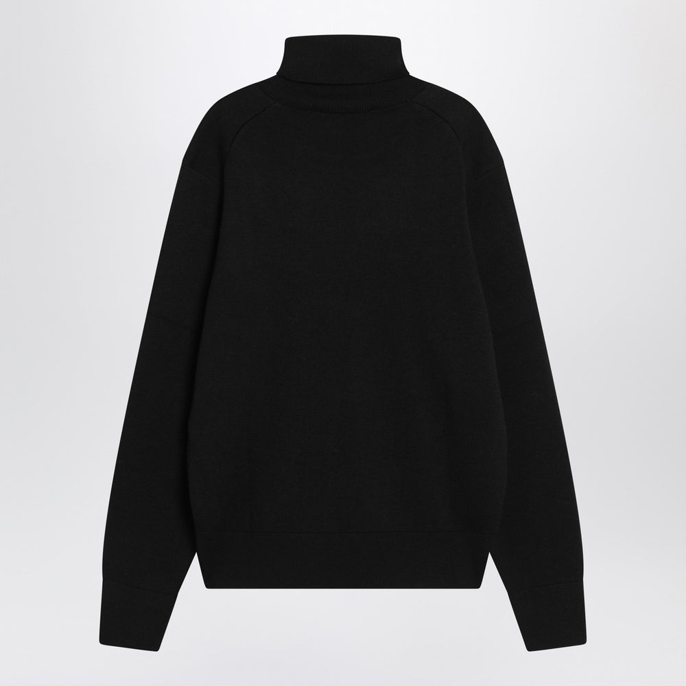 Ami Paris black wool sweater, featuring a high collar, long sleeves, contrasting Ami De Coeur logo on the chest, and ribbed edges. Size and Fit - Model wears size L Model measurements: Height: 187 cm Chest: 102 cm Waist: 76 cm Hips: 92 cm