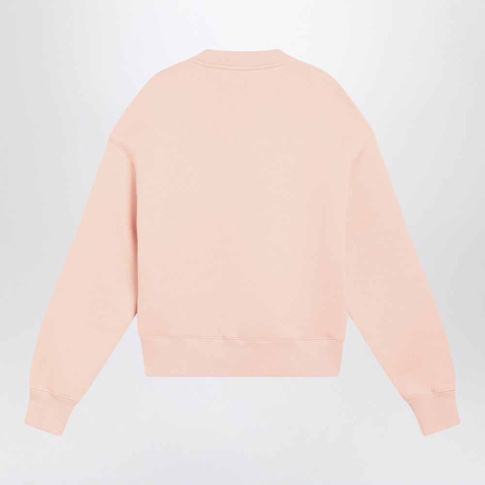 Ami Paris crew neck sweatshirt in blush pink brushed cotton, featuring long sleeves, ribbed edges, and Ami de Coeur embroidery on the chest. Size and Fit - Model wears size S Model measurements: Height: 187 cm Chest: 102 cm Waist: 76 cm Hips: 92 cm
