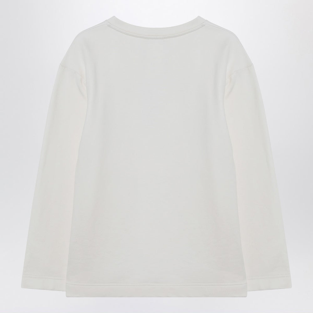 Max Mara sweatshirt in a silk and cotton blend, characterized by raised logo lettering on the chest, straight line, long sleeves with dropped shoulders, deep side slits, and a fleece-lined interior. Size and Fit - Model wears size X S Model measurements: Height: 178 cm Chest: 83 cm Waist: 63 cm Hips: 91 cm