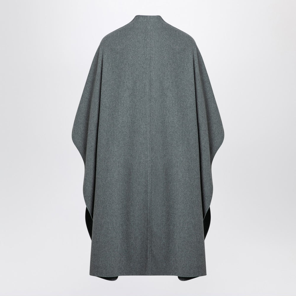 Long loose-fitting cape by The Garment in grey wool blend, featuring a button fastening on the shoulder and two welt pockets on the side.